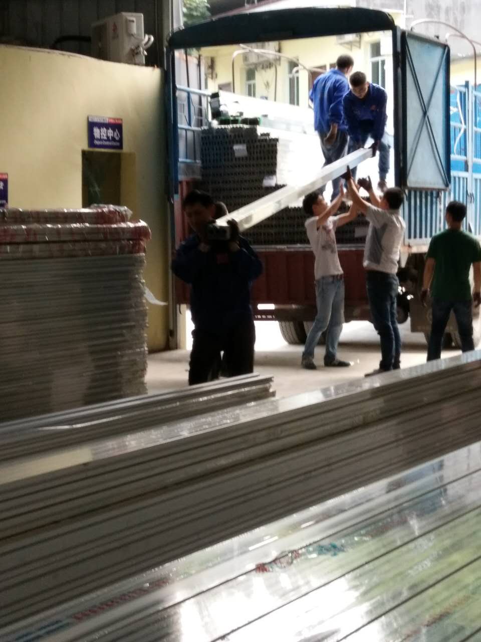 匯利興戰士齊心協力一同卸下鋁型材,滿大車的鋁型材轉間就轉移至倉庫。(團結就是力量)