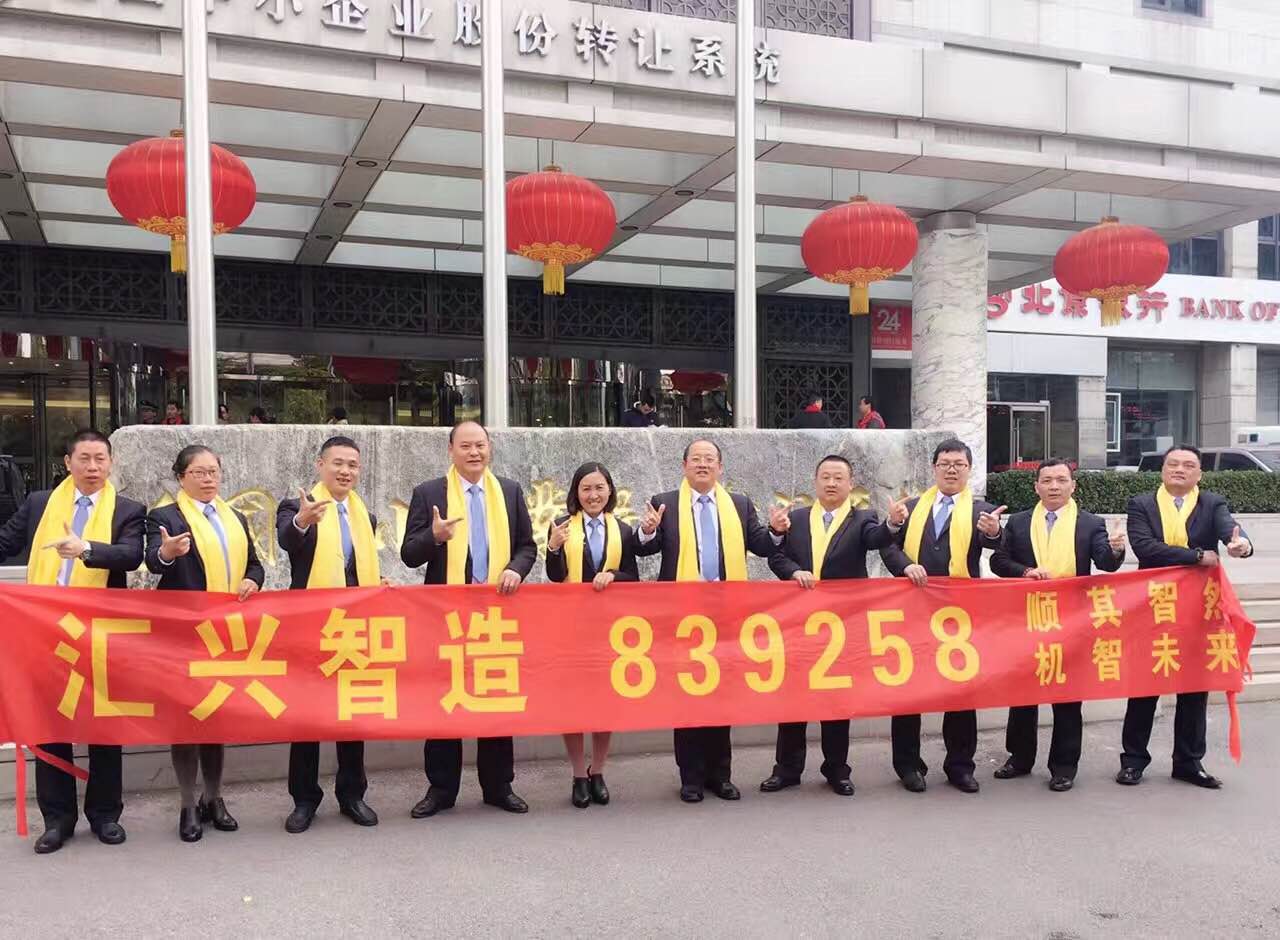 2016年11月1日上午10點(diǎn),廣東匯興精工智造股份有限公司(股票代碼:839258)以下簡(jiǎn)稱匯興智造,在全國(guó)中小企業(yè)股份轉(zhuǎn)讓系統(tǒng)儀式大廳隆重舉行掛牌上市儀式。參加此次掛牌事宜內(nèi)部嘉賓主要代表有鐘輝董事長(zhǎng)、昆山公司鐘世鑫總經(jīng)理、重慶公司胡偉路總經(jīng)理、李福生總經(jīng)理、呂常垣總經(jīng)理、鄧高全總監(jiān)等董監(jiān)高10余人。由鐘輝董事長(zhǎng)代表發(fā)言及敲鐘儀式。成為了中國(guó)資本市場(chǎng)上首家以“精工智造股份有限公司”名稱掛牌上市的企業(yè)。