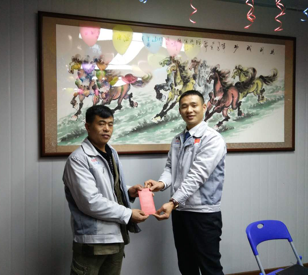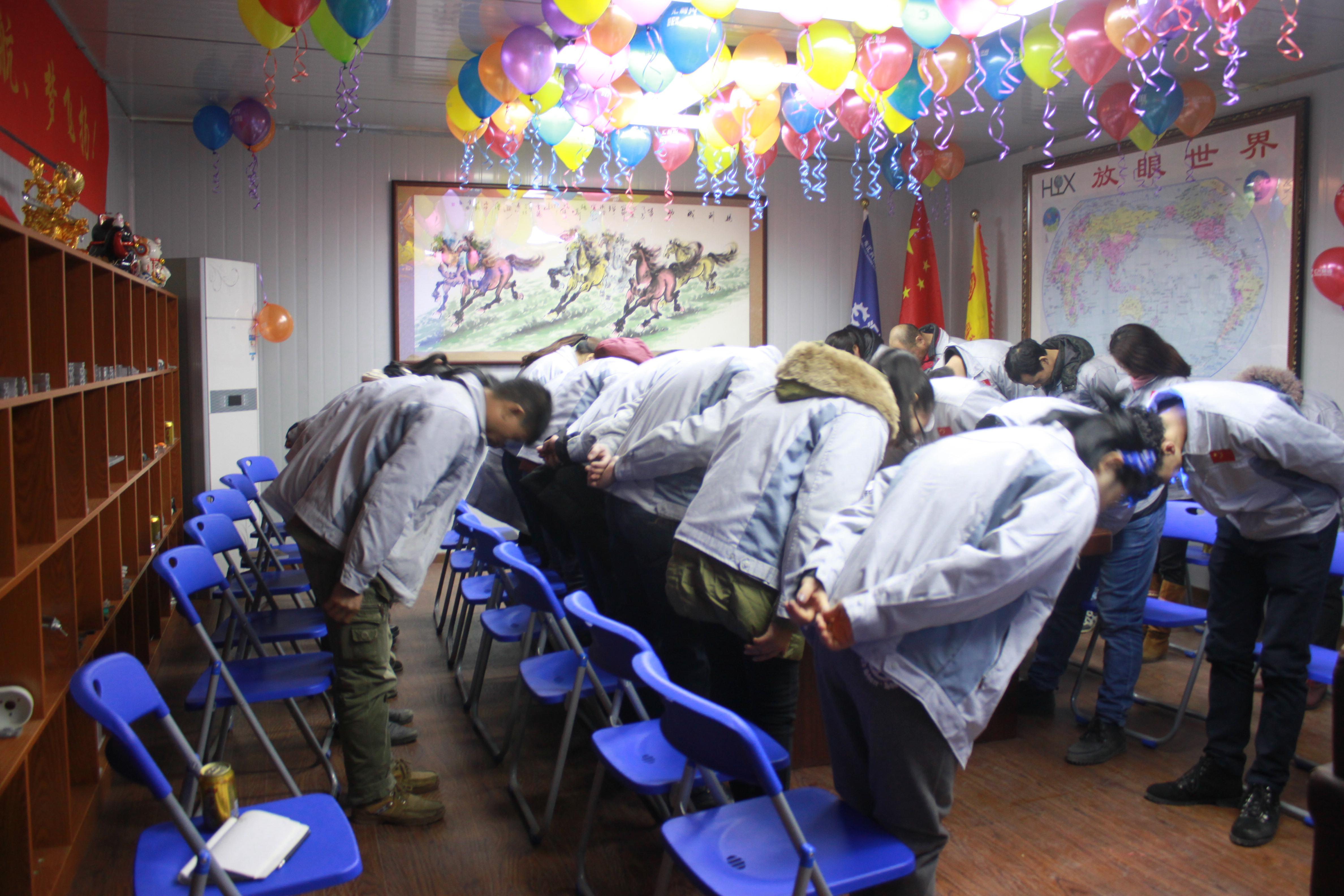 (眾人一條心)游戲準備中,裁判們為選手們系上同心交織的紐帶 匯利興女戰士敲擊士鼓,士氣比武器更重要 會議召開前對企業三道(人道、孝道、商道)行三鞠躬 年度盛會由主持人劉園園上臺正式拉開序幕,會議前我們一起回眸2016年工作縮影,回眸了與匯利興大家庭的交集。 會議上,胡總經理表示:2017年新起點的一系列規章制度、員工薪酬福利制度、員工職位考核制度,回首了2016年匯利興的成長與發展,3月14日公司搬址、傳祺戰車加入、倉儲及系統完善,2017年展望與目標。同時表示感謝大家在2016年中的包容與支持同時也相信大家在2017年能一起攜手完成我們的目標及挑戰。此后各部門代表發言總結2016年展望及2017年每月業績目標。 匯利興全體戰士一起回眸2016年與匯利興大家庭的交集 隨著年會的氣氛越來越濃厚,接下來由胡總經理一一頒發獎金及揭曉年會大獎獲者。獎金頒發:最佳付出獎、最佳責任獎分別是劉元平與石樂歡戰士,在此感謝兩位家人的奉獻與付出。 在你們愛家的同時匯利興這個家會更加愛你們。 胡偉路總經理與“最佳責任獎”榮獲者石樂歡同框合影 胡偉路總經理與“最佳付出獎”榮獲者劉元平同框合影 年會大獎揭曉,胡總經理一一揭曉大獎獲者,此次大獎由26個英文字母之一相繼而出,獲獎組圖以下: 胡偉路總經理與年度盛會大獎獲得者合影圖(特等獎、一等獎、二等獎、三等獎、四等獎) 年度盛典活動逐漸接近尾聲,活動以“畫鼻子”游戲拉開帷幕。即使看不見光明,只要心中有信仰、信念那也將是一個通往前方的航燈。 匯利興大家庭年會團圓飯圖貌 隨著年飯的結束,2016年盛會圓滿結束。回首過去,放眼未來,2016年已逝去的,我們不再留戀,2017年的到來我們去迎接;因為在新的一年有我們的目標及夢想我們要一同去創造去實現它,實現中國智能裝備全產業鏈集成智造標桿,繼續引領行業的發展。同時在此感恩所有對匯利興關懷及支持過的您們,正是因為有了您們的支持才得以讓匯利興茁壯成長,才能讓匯利興在行業道路上越走越穩。感恩您們......