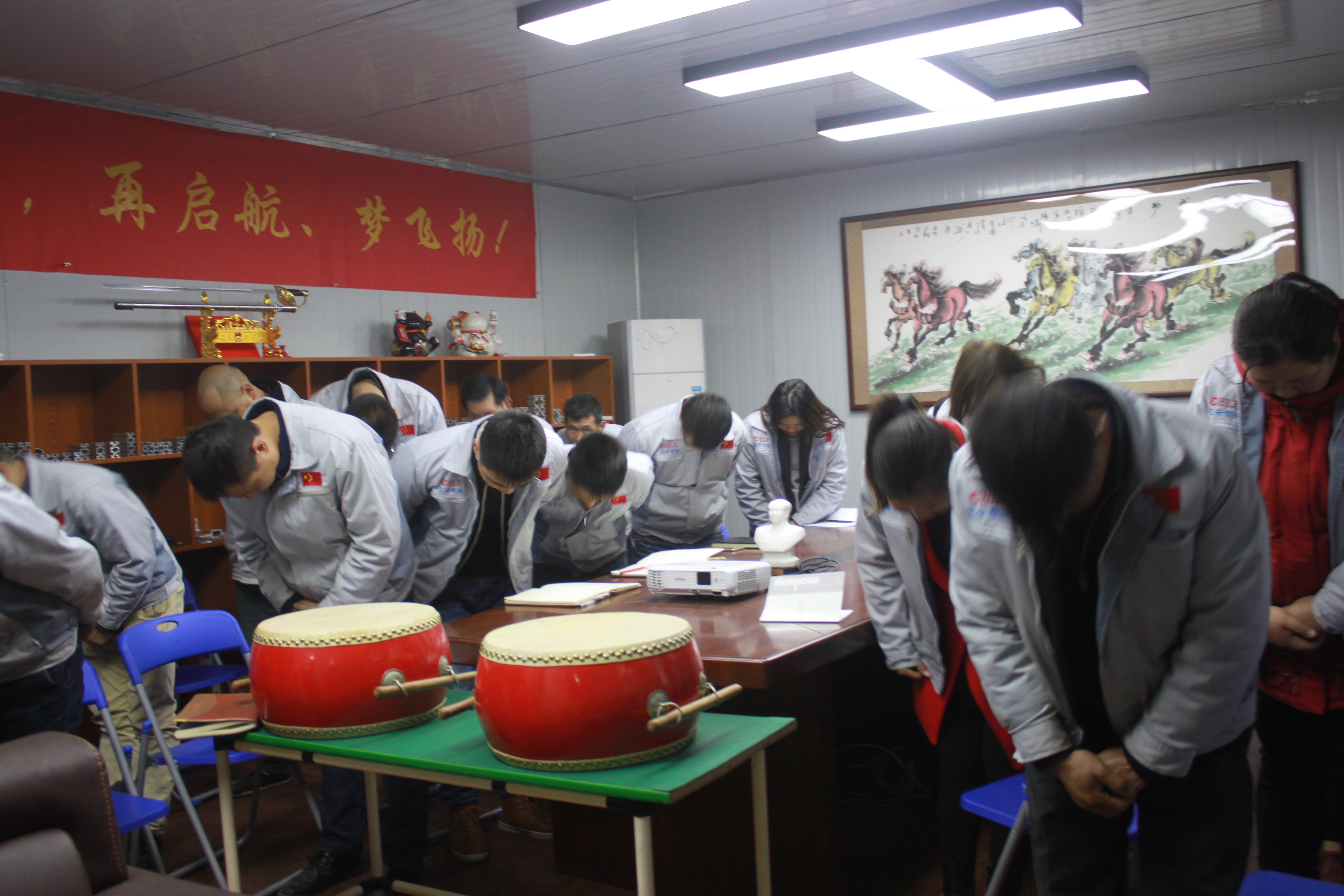 全體人員向企業三道“人道、孝道、商道”行三鞠躬