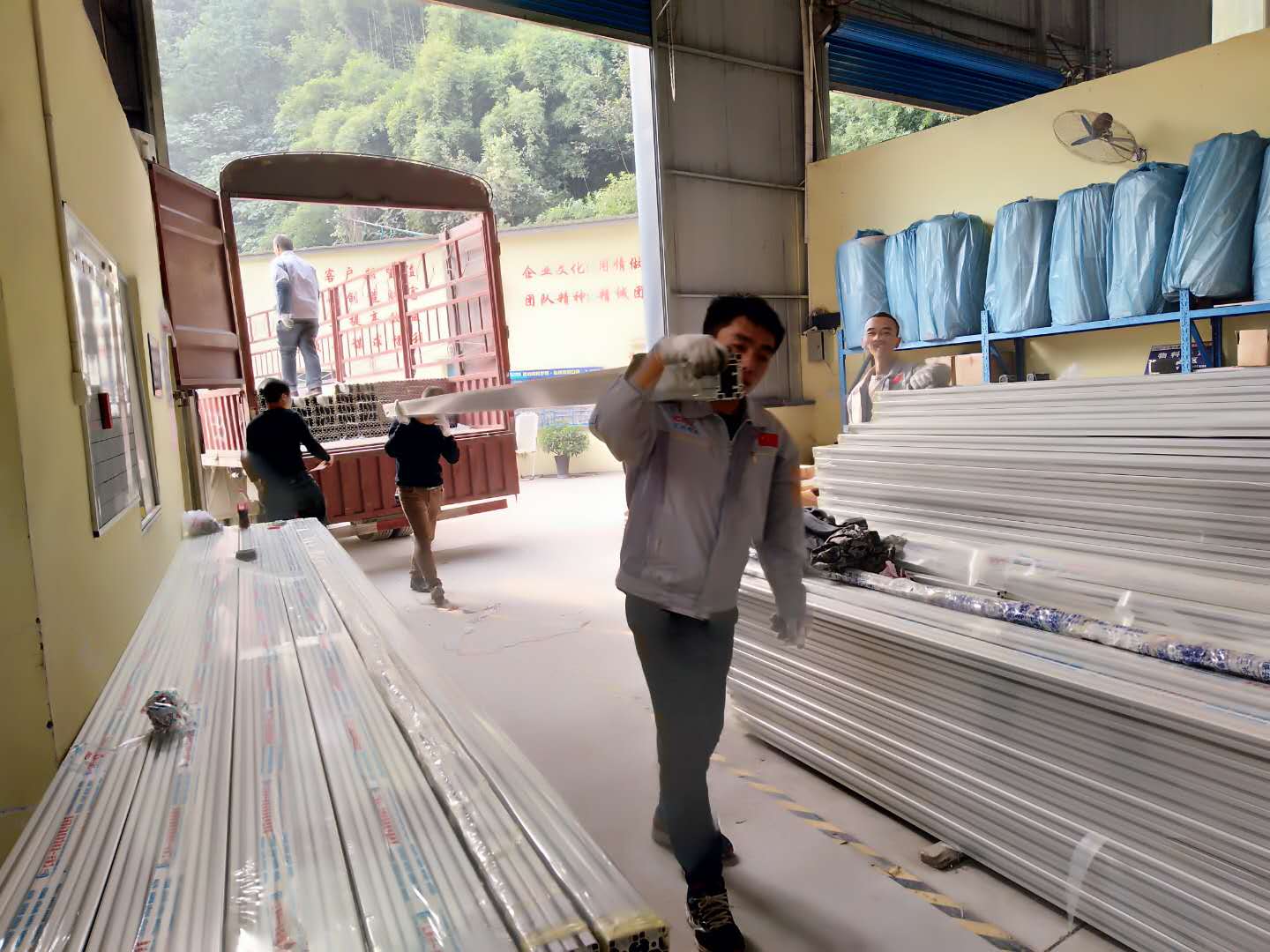 云開霧繞、陽光柔和似乎渲染著匯利興廠區(qū)的一片繁忙景象。滿載著材料的大卡車陸陸續(xù)續(xù)駛向廠內(nèi),鋁型材、精益管、滾筒鋼管等一車又一車,家人們奮不顧身前去搬卸鋁材進(jìn)而更快速的出入貨。雖初晨有些僵手,但家人們依舊有序的工作著,切割鋁材、鉆孔攻牙、生產(chǎn)滾筒等都井然有序、團(tuán)結(jié)一致工作著,進(jìn)而體現(xiàn)了家人們的團(tuán)隊(duì)精神及對(duì)工作的敬職敬業(yè)。然此次到貨鋁材規(guī)格有:HLX-100*118、HLX-3060、HLX-4080、HLX-6060、HLX-3030等,再次迎來黃金采購期,各規(guī)格鋁材及配件應(yīng)有盡有,歡迎咨詢采購!!! 在寬曠的車間來回跑動(dòng),鏗鏘有力的他們每一個(gè)動(dòng)作都充滿著活力;無論風(fēng)雨他們依舊朝氣蓬勃、精神煥發(fā)的奮斗著。在此,感謝你們的付出與努力“你們辛苦了”,加油!今日為更全面的滿足廣大客戶對(duì)各材料的采購,我司大批量材料到貨且種類繁多,品種齊全,來電咨詢吧!熱線電話:023-68617887