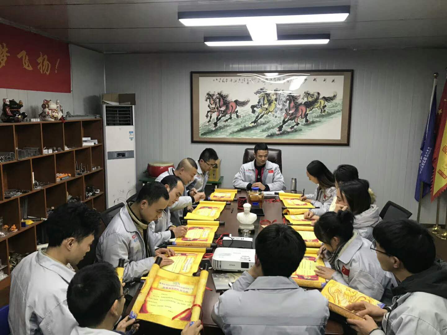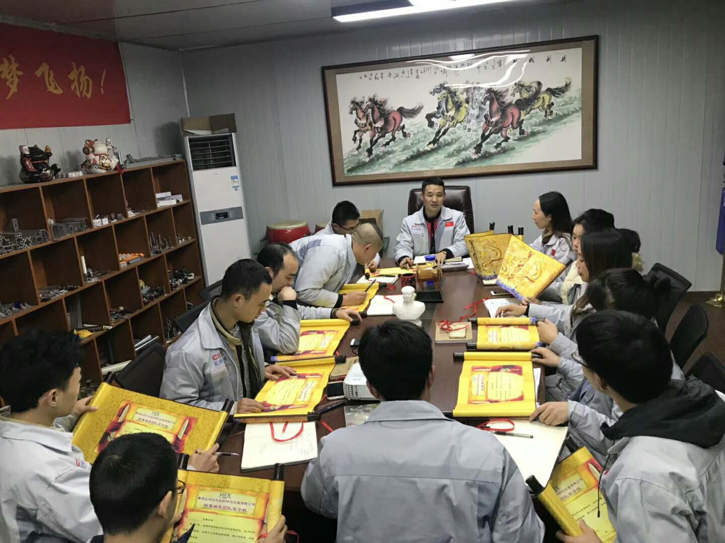12月25日晚,我司銷售精英們集體在匯利興學(xué)校公開立諾“2018年銷售目標(biāo)的訂立”,手持軍令狀提筆立據(jù)、宣誓踐行,斗志昂揚一起鎖定新目標(biāo)新挑戰(zhàn)。 在這個特別的日子,每個人都帶著莊嚴的面容并鏗鏘有力的寫下每一串?dāng)?shù)字;但寫下的這串?dāng)?shù)字此時此刻卻代表著一份責(zé)任、一份真誠、一份承諾更代表著一份力量。因為這是我們必將實現(xiàn)的目標(biāo)。眾人拾柴,火焰高;天上星多黑夜明,地上樹多成森林等這些都是匯利興團隊力量的可襯點,他們把沖刺作為主旋律,堅守著目標(biāo)及夢想時刻奔跑在荊棘的道路上和團隊一起共前進,在此為他們加油!為他們點贊!為他們鼓舞! 他們用情做人、用心做事,相互配合、互相協(xié)作,形成了一個極好的團隊氛圍,一起鎖定2018年目標(biāo),為智造崛起貢獻新力量。