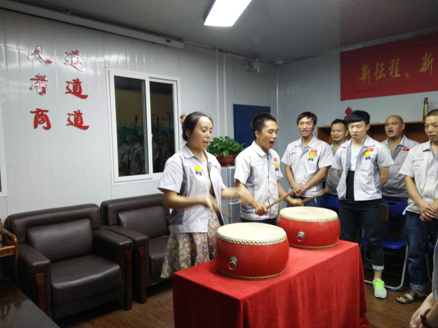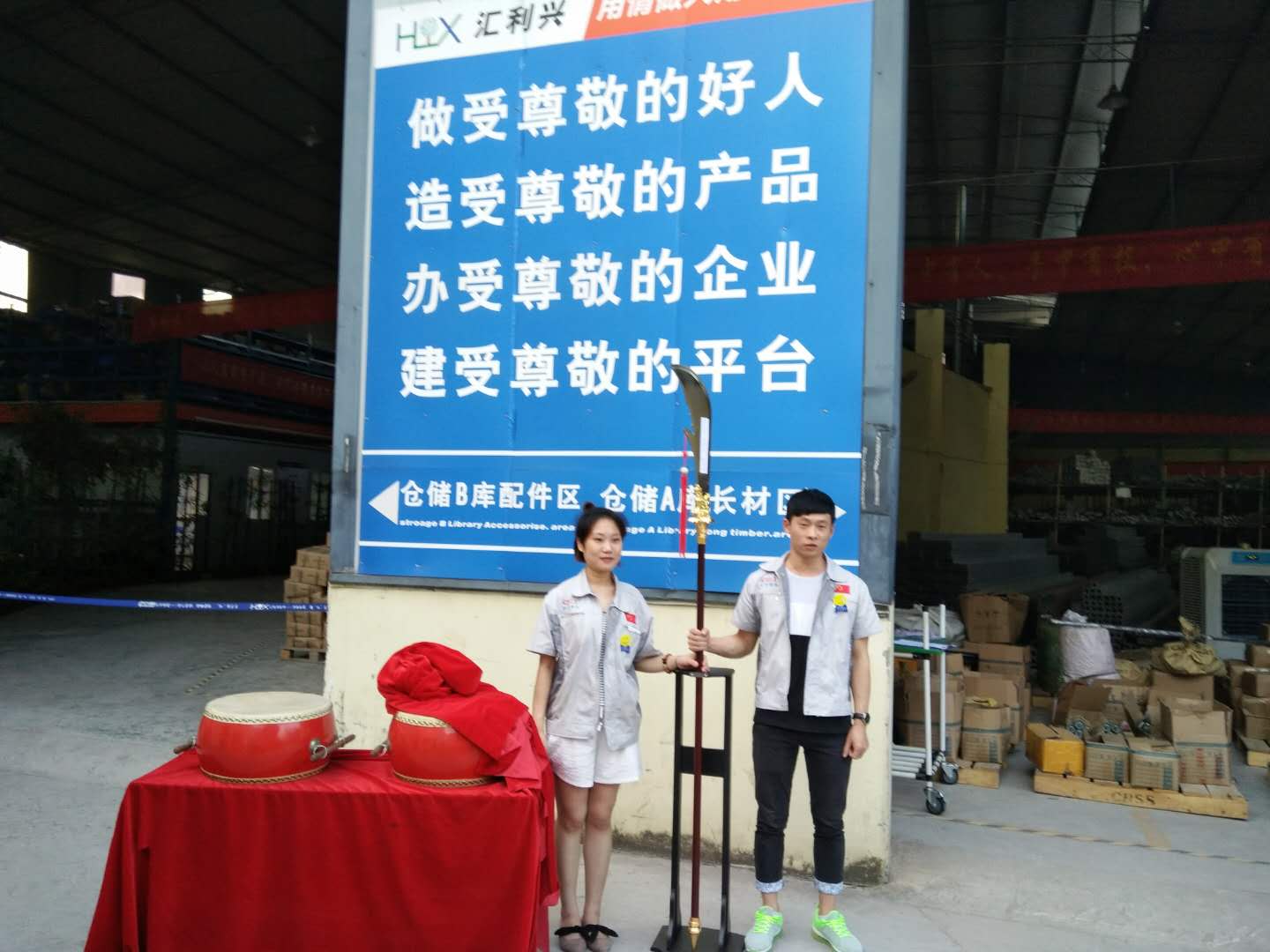 劍風所指,所向披靡。會議開始前,主持人陳香草帶領大家移步匯興文化廠地,整肅衣冠 ,對匯興人倍加推崇的“三道文化”(孝道、商道、人道)鄭重地鞠躬,莊嚴宣誓企業(yè)精神“用情做人、用心做事”,團隊精神“忠誠團結、勤奮進取”,隨后由匯興兩位女精英擊士氣鼓,凝人心、鼓干勁;緊接著胡偉路總經(jīng)理授予采購部凝聚亮劍精神的一把寶刀,亮出氣勢、匯聚力量,砍前行荊棘、勇踏匯興征途。