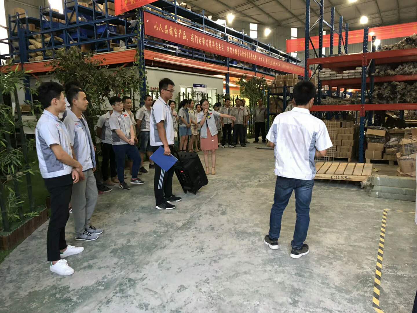 隨著家人們熱情高漲,會議開啟第二議程。全體人員隨主持人巡視倉儲A區(qū)長材區(qū)與倉儲B區(qū)配件區(qū)庫存及加工區(qū)面貌,集思廣益、廣納諫言并相互監(jiān)督面貌的保持。