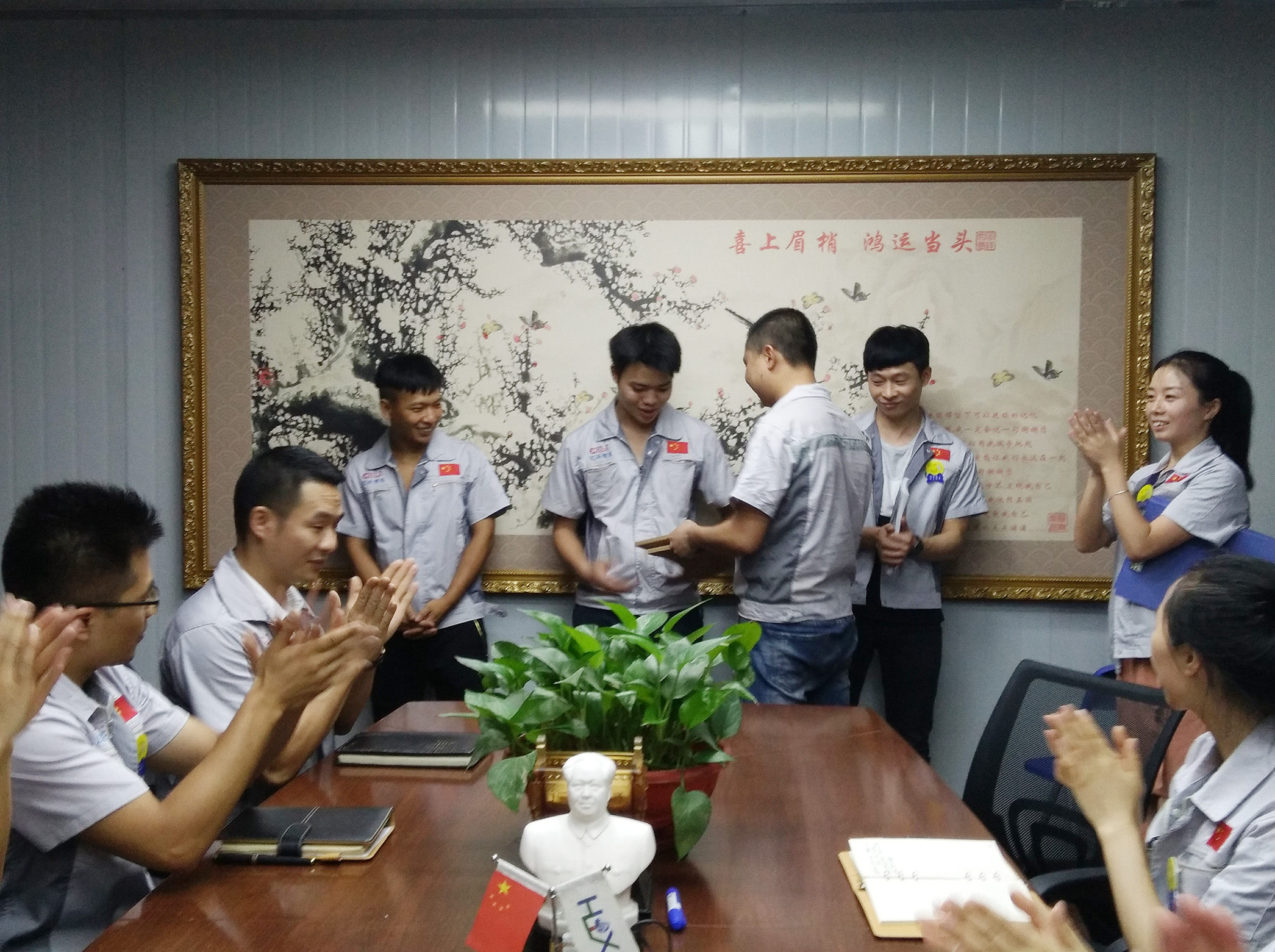 作為掛牌企業(yè)(股票代碼:839258),匯利興長期以來,一直重視新鮮血液的注入和人才的引進,截止今日匯利興從之前的幾個人變成現(xiàn)在的幾十人,團隊力量逐步增強,為行業(yè)貢獻力量愈發(fā)強大。會議開啟第三議程-新員工入職歡迎儀式,物控部徐主管為新員工頒發(fā)紀念品。