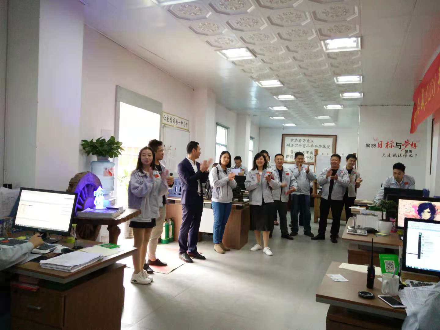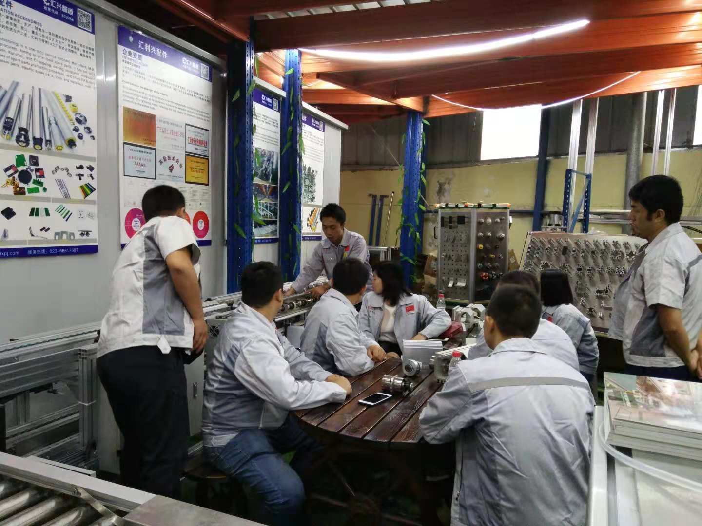 胡偉路總經理帶領集團代表一行認識了匯利興(重慶)公司贏銷部的家人們,并陪同集團代表一行參觀了匯利興(重慶)公司型材長材區及配件區,介紹了重慶公司的新利器-型材切割機,了解了重慶子公司一系列作業機械同時也參觀了9月份的參展線體,并現場相互交流了一些新創意、新想法,并表示匯利興(重慶)公司一系列文化及規模體系是值的稱贊得!同時胡偉路總經理表示,重慶公司的文化完全是授予集團公司的熏陶,在現有的文化上又創新了一些具備匯利興(重慶)公司的文化及作業體系,因此在廠容廠貌的結構上有些許新穎。