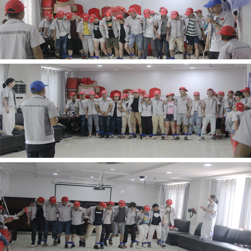 隨后在大家的強(qiáng)烈要求下,全體人員集體來一次“坐地而起”的游戲,挑戰(zhàn)自我、挑戰(zhàn)極限。大家肩靠肩、手挽手,同心協(xié)力一起發(fā)力,當(dāng)然這次并沒有像小組賽那樣順利,一會(huì)兒這邊人起來,一會(huì)兒另一邊的人沒有起來,這樣反復(fù)經(jīng)過一次又一次的嘗試,大家相互鼓勵(lì)、堅(jiān)持及努力,不斷的修正及解決存在的問題下,最終在第五次的嘗試下,集體以7秒的時(shí)間成功取得勝利,全員統(tǒng)一都站了起來。在那一刻全員的心都是沸騰的,不停的在為團(tuán)隊(duì)鼓掌為自己鼓掌,同時(shí)也讓大家明白了一個(gè)道理,無論遇到任何事,都要不斷地去改變、修正、堅(jiān)持、堅(jiān)持再堅(jiān)持,因?yàn)槌晒ν褪窃賵?jiān)持一下。
