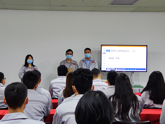 會議第二項議程,新員工入職歡迎儀式。由常務副總徐總親自為新入職員工頒發紀念品。為公司注入新鮮血液,為團隊帶來新的生機和活力。