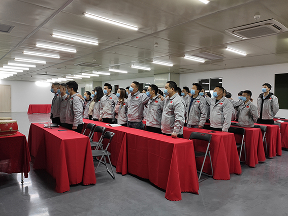 會議第一項議程,企業文化的展示。全體匯興人整肅衣冠對匯興人倍加推崇的“三道文化”(孝道、商道、人道)鄭重地鞠躬,莊嚴宣誓企業愿景:“成為全球領先的智能自動化產業鏈集成服務商”,企業使命:做受尊敬的好人,造受尊敬的產品,辦受尊敬的企業,建受尊敬的平臺,企業精神“用情做人、用心做事”,團隊精神“忠誠團結、勤奮進取”,工匠精神:創于手、精于工、智于器、匠于心、品于行等。隨后由胡總經理和張副總擊士氣鼓,士氣比武器更重要,現場氣氛熱烈、振奮人心。