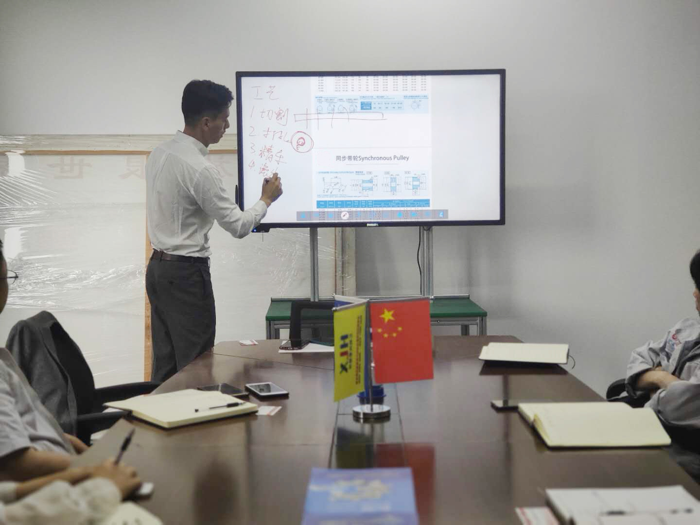 為更好的服務客戶,為客戶提供更全面更便捷的一站式采購平臺,5月8日,匯利興特邀同步輪/帶戰略合作商來司傳經送寶!主要參與部門:銷售部、客服部、采購部、工程部等。 培訓中,同步輪/帶戰略合作商通過制作、加工到售后一系列操作進行詳細的講解,讓大家在短時間且有效的掌握產品技術賣點,并進行實操互動來進行分享。