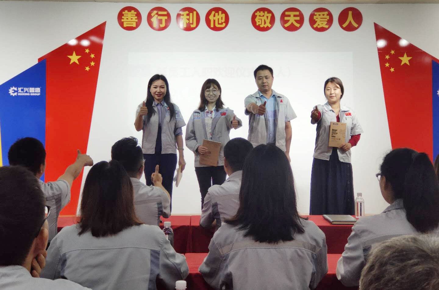 2020年9月22日8點(diǎn),匯利興西南工廠全體員工在匯利興學(xué)校召開(kāi)8月月度會(huì)議,由事務(wù)中心主管陳香草主持。 會(huì)議前由二位核心高管擊士氣鼓,鼓舞匯利興奮勇前進(jìn),現(xiàn)場(chǎng)鼓聲震天,士氣如虹。 會(huì)議第一項(xiàng)議程,企業(yè)文化的展示。全體匯興人整肅衣冠對(duì)匯興人倍加推崇的“三道文化”(孝道、商道、人道)鄭重地鞠躬,莊嚴(yán)宣誓企業(yè)愿景:“成為行業(yè)優(yōu)秀的智能自動(dòng)化產(chǎn)業(yè)鏈集成服務(wù)商”,企業(yè)使命:做受尊敬的好人,造受尊敬的產(chǎn)品,辦受尊敬的企業(yè),建受尊敬的平臺(tái),企業(yè)精神“用情做人、用心做事”,團(tuán)隊(duì)精神“忠誠(chéng)團(tuán)結(jié)、勤奮進(jìn)取”,工匠精神:創(chuàng)于手、精于工、智于器、匠于心、品于行,行為準(zhǔn)則:口中有德、目中有人、手中有技、心中有愛(ài)、行中有善,職業(yè)準(zhǔn)則:對(duì)工作熱臉、對(duì)同事笑臉、對(duì)錯(cuò)誤紅臉、對(duì)浪費(fèi)黑臉、對(duì)榮譽(yù)爭(zhēng)臉。 會(huì)議第二項(xiàng),新員工入職歡迎儀式。企業(yè)的發(fā)展注定離不開(kāi)新鮮血液的注入,新的活力的輸入,由徐總親自為新入員工頒發(fā)紀(jì)念品及新員工代表講話。