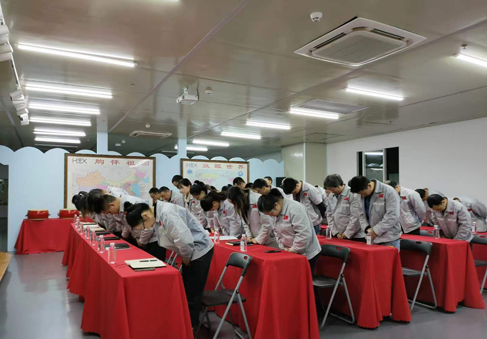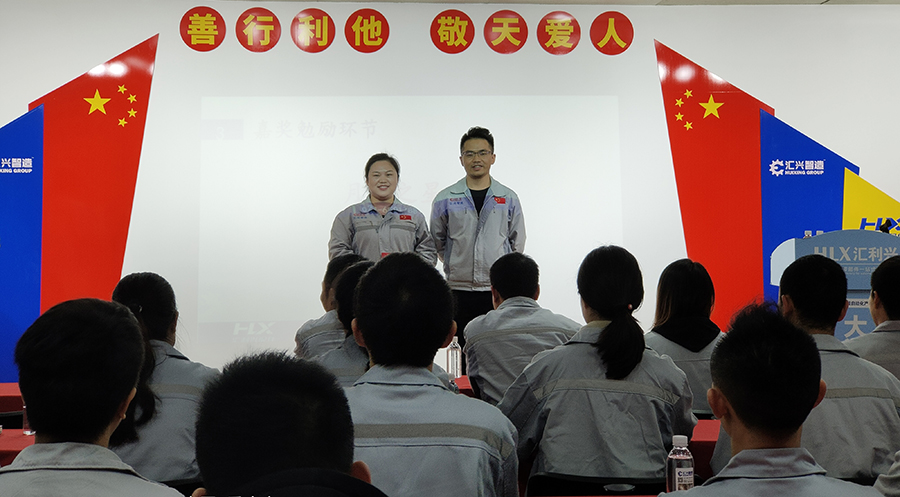 2020年10月17日13點45分,匯利興西南工廠全體員工在匯利興學校召開9月月度會議,由事務中心主管陳香草主持。 隨后二位女精英擊響士氣鼓,鼓舞士氣,鼓舞著戰(zhàn)友們奮勇前進,并以這種以評促進、你追我趕的“激勵文化”,潛移默化融于員工的日常工作中,同時也鞭策著員工們不斷爭先創(chuàng)優(yōu),推動企業(yè)發(fā)展的內(nèi)生動力,從而形成“我來干、搶著干、努力干”的工作作風。現(xiàn)場鼓聲震天,士氣如虹。 會議第一項議程,企業(yè)文化展示。全體匯興人整肅衣冠對匯興人倍加推崇的“三道文化”(孝道、商道、人道)鄭重地鞠躬,莊嚴宣誓企業(yè)愿景:“成為行業(yè)優(yōu)秀的智能自動化產(chǎn)業(yè)鏈集成服務商”,企業(yè)使命:做受尊敬的好人,造受尊敬的產(chǎn)品,辦受尊敬的企業(yè),建受尊敬的平臺,企業(yè)精神“用情做人、用心做事”,團隊精神“忠誠團結(jié)、勤奮進取”,工匠精神:創(chuàng)于手、精于工、智于器、匠于心、品于行,行為準則:口中有德、目中有人、手中有技、心中有愛、行中有善,職業(yè)準則:對工作熱臉、對同事笑臉、對錯誤紅臉、對浪費黑臉、對榮譽爭臉。