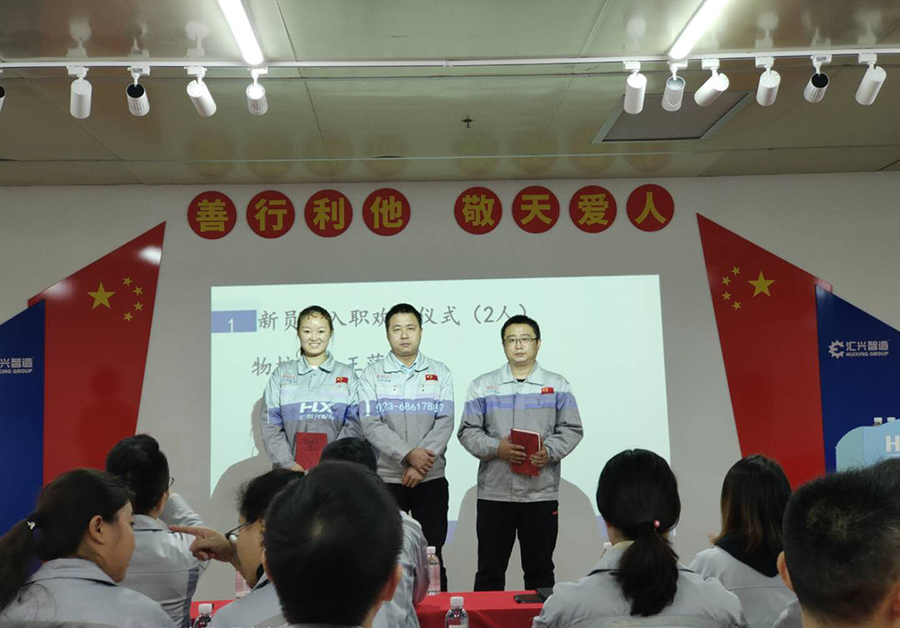 會議第二項議程,新員工入職歡迎儀式。企業(yè)的發(fā)展注定離不開新鮮血液的注入,新的活力的輸入,由徐總親自為新入員工頒發(fā)紀念品及新員工代表講話。