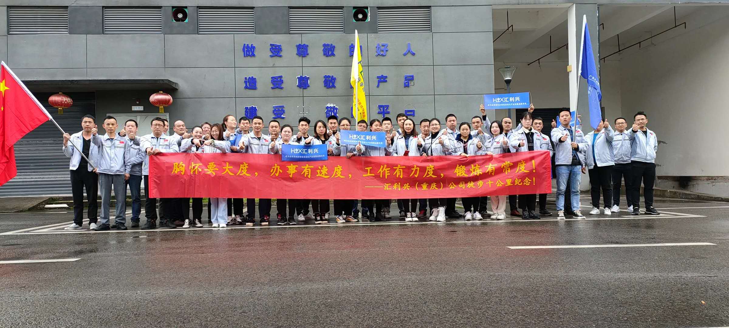 在匯利興隊旗的的引領下,團魂爆棚的匯利興人,大步奔向前方,用腳步丈量著土地,用力量揮灑著汗水!每一位員工都懷著激昂的熱情向目標邁進,前進,創(chuàng)造一個又一個奇跡;奔跑,跨越一個又一個障礙。邁出突破困境的那一步,用汗水凈化面對困難的浮躁,用笑容拂去10公里跋涉的疲勞,這就是匯利興人所帶來的精神,匯利興團隊所帶來的力量。萬事開頭難,只要肯攀登,一定會取得勝利。