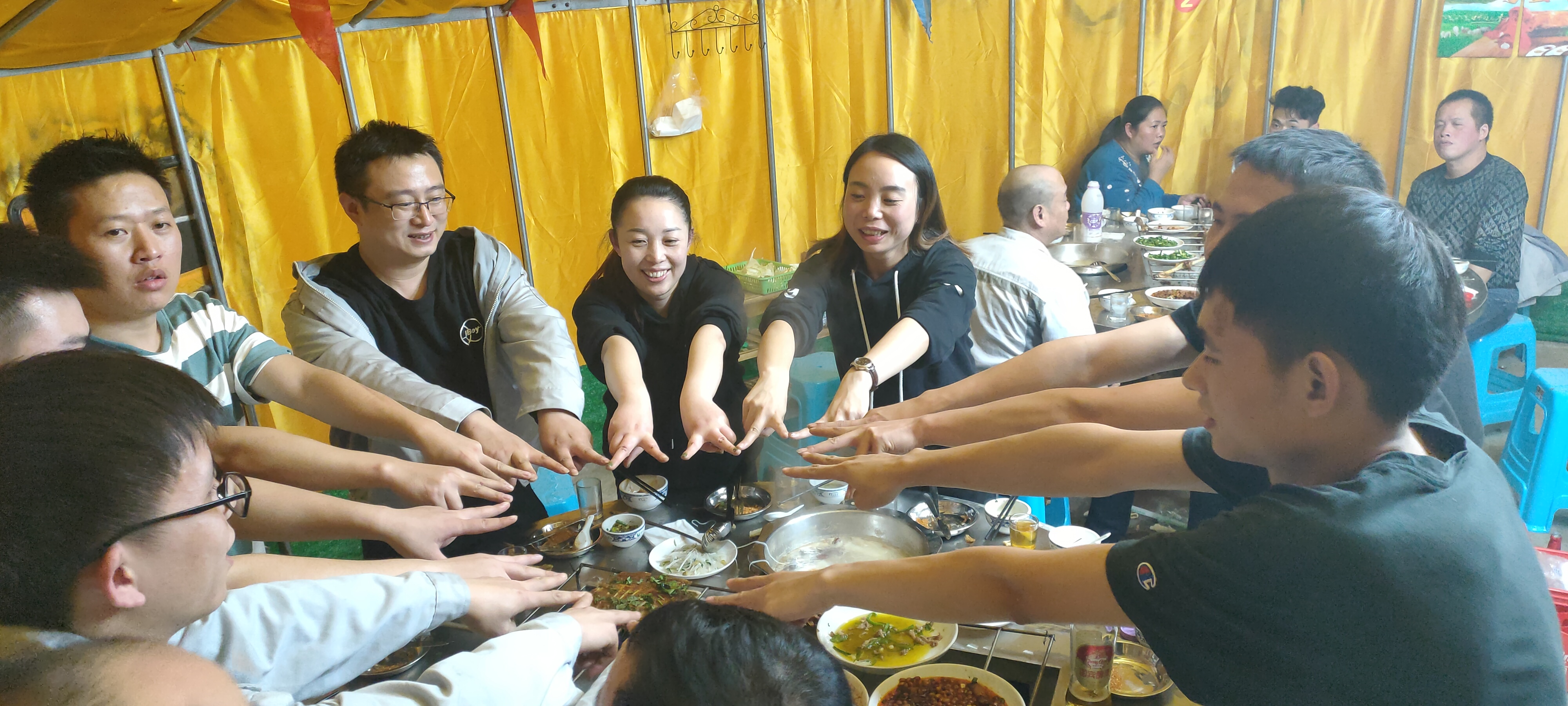隨著大伙兒的精彩分享,匯利興人激情越發(fā)高漲,現(xiàn)場進行了一場別開生面的拔河比賽,排山倒海的氣勢,絲毫不輸徒步時的激情與熱情,加油的吶喊聲此起彼伏,雙方隊員使盡渾身解數(shù)、雷霆萬鈞之力斬獲勝利,現(xiàn)場活力四射,士氣如虹,從側(cè)面詮釋著匯利興是一支超強的團隊!永不言敗的團隊! 拔河比賽結(jié)束后,小伙伴們的卡路里也已耗盡,大伙兒充滿期待的開啟了入冬里的第一只羊,感受塞外的風情,感受坐在蒙古包里大口吃肉,大口喝酒的豪氣,熱騰騰的羊肉火鍋和冰爽無比的啤酒,冷熱交織間讓人體會豐富的滿足感,像是穿越在廣闊的大草原上,完全洗凈了徒步的勞累與工作的壓力,暢所欲言、十分放松,并共同舉杯歡慶這相聚的時刻,感謝團隊中的每一個人,感謝付出的每一份力量! 隨著時間推移,本次活動就圓滿結(jié)束!通過此次團建活動,讓大家深深感觸到“團隊”的重要性,因為一個團隊想要發(fā)展的壯大,只有緊密團結(jié)為一個整體,才可能戰(zhàn)無不勝、攻無不克!同時也進一步增強了團隊凝聚力及向心力、加強各個部門間的溝通與合作!讓全體員工在繁忙的工作之余既放松了身心也鍛煉了身體!也進一步讓全體員工體會到只有一起揮灑了汗水,才能一起收獲暖意!只有跟隨部隊的腳步,才能取得最終的勝利!