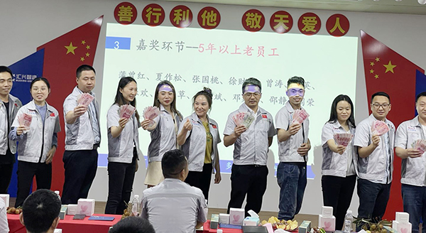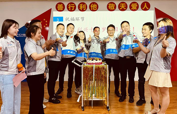 老員工代表夏佐松發(fā)表感言。夏經(jīng)理表示對(duì)于我而言,公司就是我的家,五年、十年這不是簡(jiǎn)單的數(shù)字,是我對(duì)家的愛(ài),是我藏于心中的一份情,同時(shí)十年也是匯利興一段光輝的歷程。回想剛進(jìn)匯利興的面貌再到今天,公司發(fā)生了質(zhì)的飛躍,十年匯利興人共同的奮斗,十年不懈的探索與實(shí)踐,十年的積累與沉淀,更是離不開(kāi)領(lǐng)導(dǎo)的決策和大家的努力,也正是因?yàn)橛羞@樣一群人在公司領(lǐng)導(dǎo)的帶領(lǐng)下,不斷助推著公司前行,突破!咱們的家才會(huì)越來(lái)越優(yōu)秀!在此,再次祝賀公司十周年生日快樂(lè)! 總部及各分子公司送祝福及慶祝十周年生日。隨著一曲歡快的生日音樂(lè)正式拉開(kāi)十周年慶典儀式,董事長(zhǎng)及各分子公司對(duì)重慶工廠的聲聲祝福,讓在場(chǎng)的每一個(gè)人都激動(dòng)萬(wàn)分,處處洋溢著滿滿的熱情,處處見(jiàn)證了重慶十年的奮斗歷程!中層管理人員共同點(diǎn)燃十根蠟燭,象征著匯利興重慶工廠業(yè)績(jī)蒸蒸日上、鴻運(yùn)相伴永久,隨后全體匯利興人一起唱響生日歌,一起慶祝重慶十周年生日快樂(lè)!