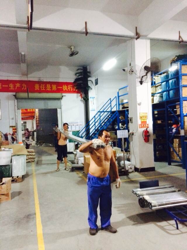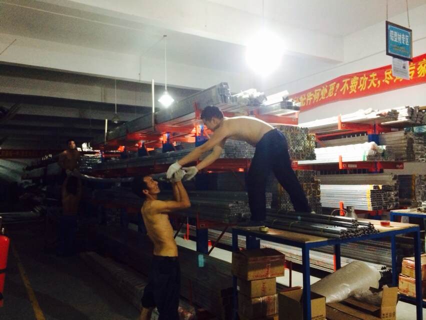 怎么玩耍;但是我司的車間里依然緊張忙碌著。由于我司自行開模的工業(yè)鋁型材今日到貨八十余萬元,滿滿的兩大卡車鋁材要馬上卸貨。我司戰(zhàn)士二話不說,加班加點,開足馬力,努力工作著。