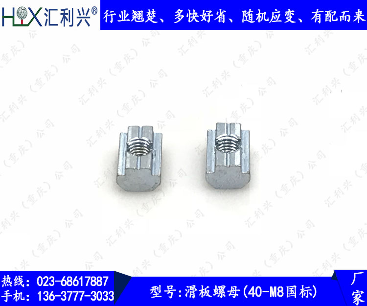 產(chǎn)品名稱(chēng):滑板螺母(40-M8國(guó)標(biāo)) 產(chǎn)品型號(hào):滑板螺母(40-M8國(guó)標(biāo))